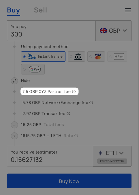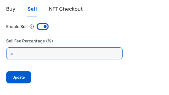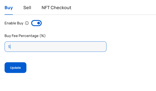 Step 3: Enter the partner fee in Enable Buy for the On-Ramp fee and Enable Sell for the Off-Ramp fee.